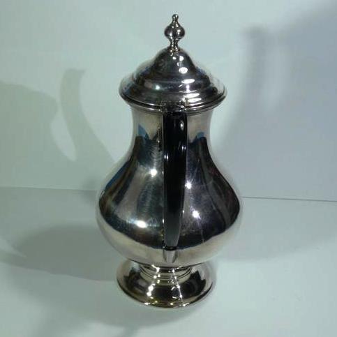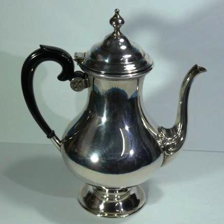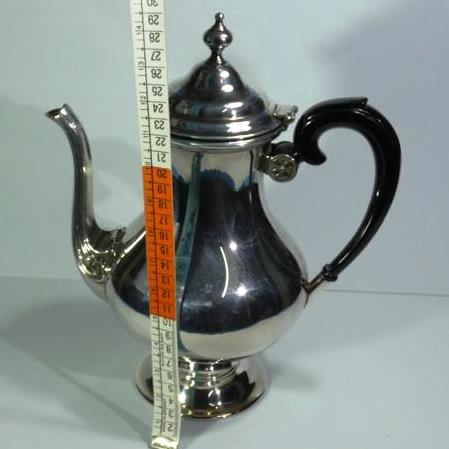 Delicada cafetera en alpaca plateada fabricada en los años 80 por la marca Meneses. Está nueva, porque nunca ha sido utilizada.