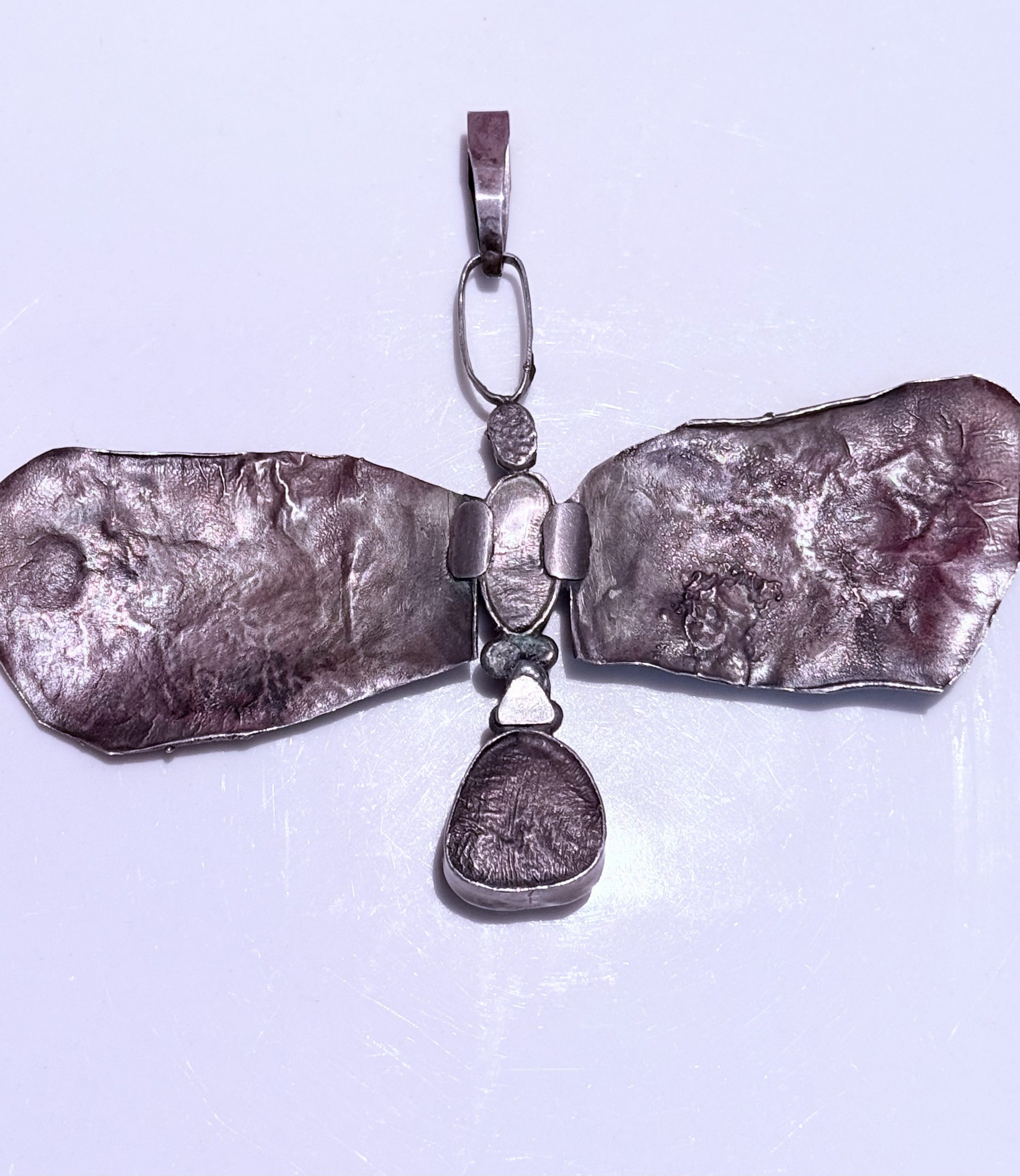 Colgante de plata de ley 925 mm hecho a mano, años 80, en forma de mariposa.
