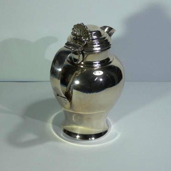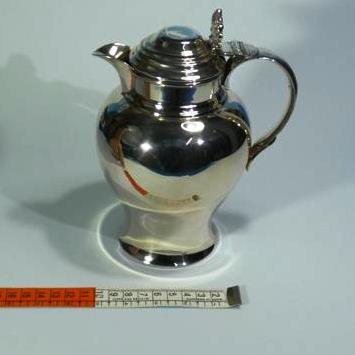 Escanciador para vino y otros líquidos fabricado por Almazán en latón plateado. Medidas 20cm de alto por 10cm de díámetro,