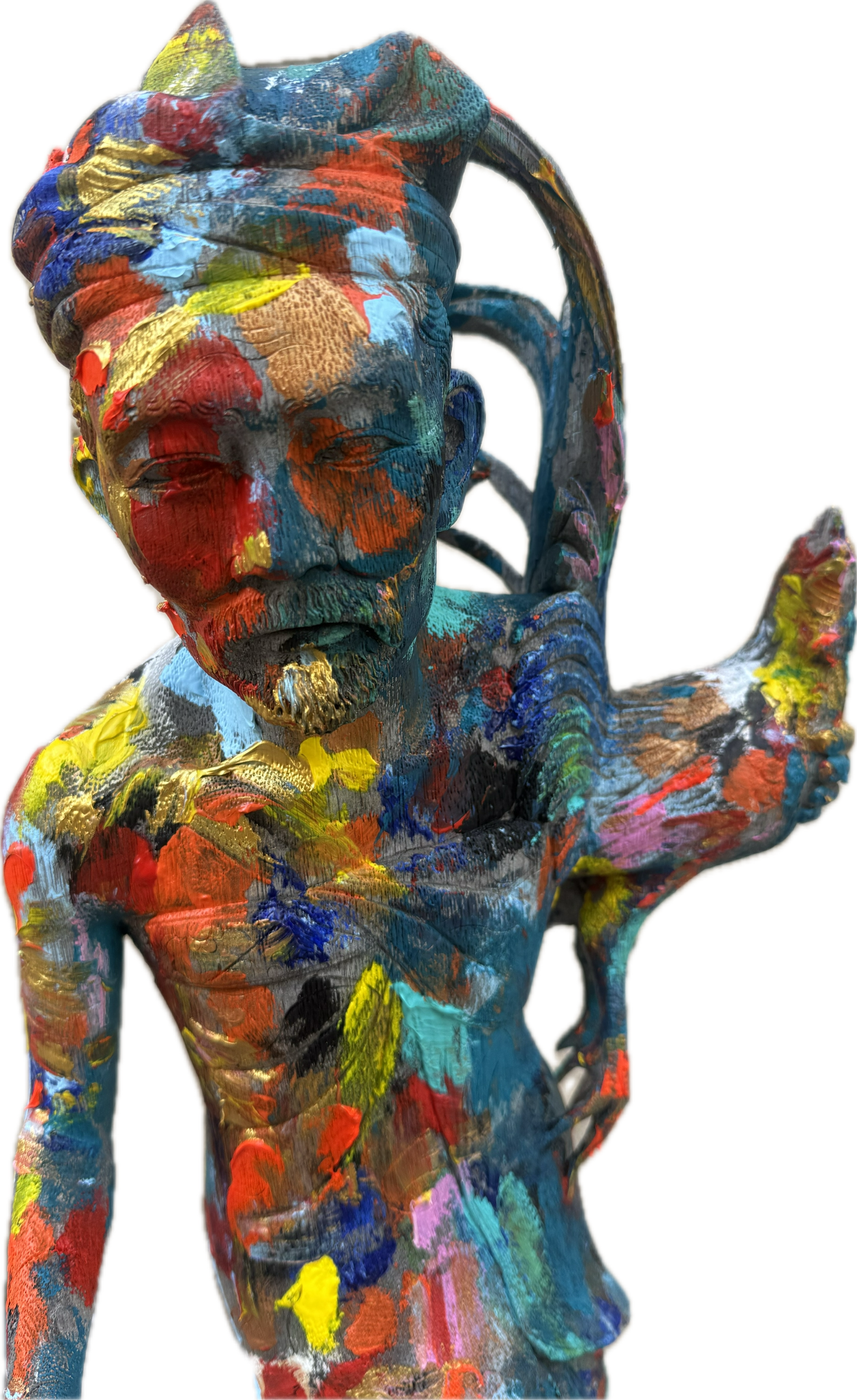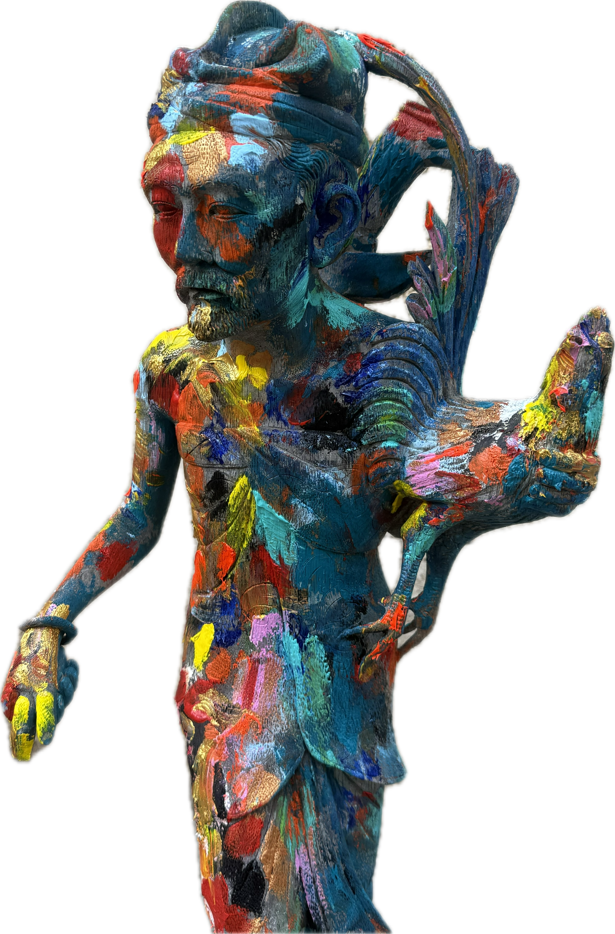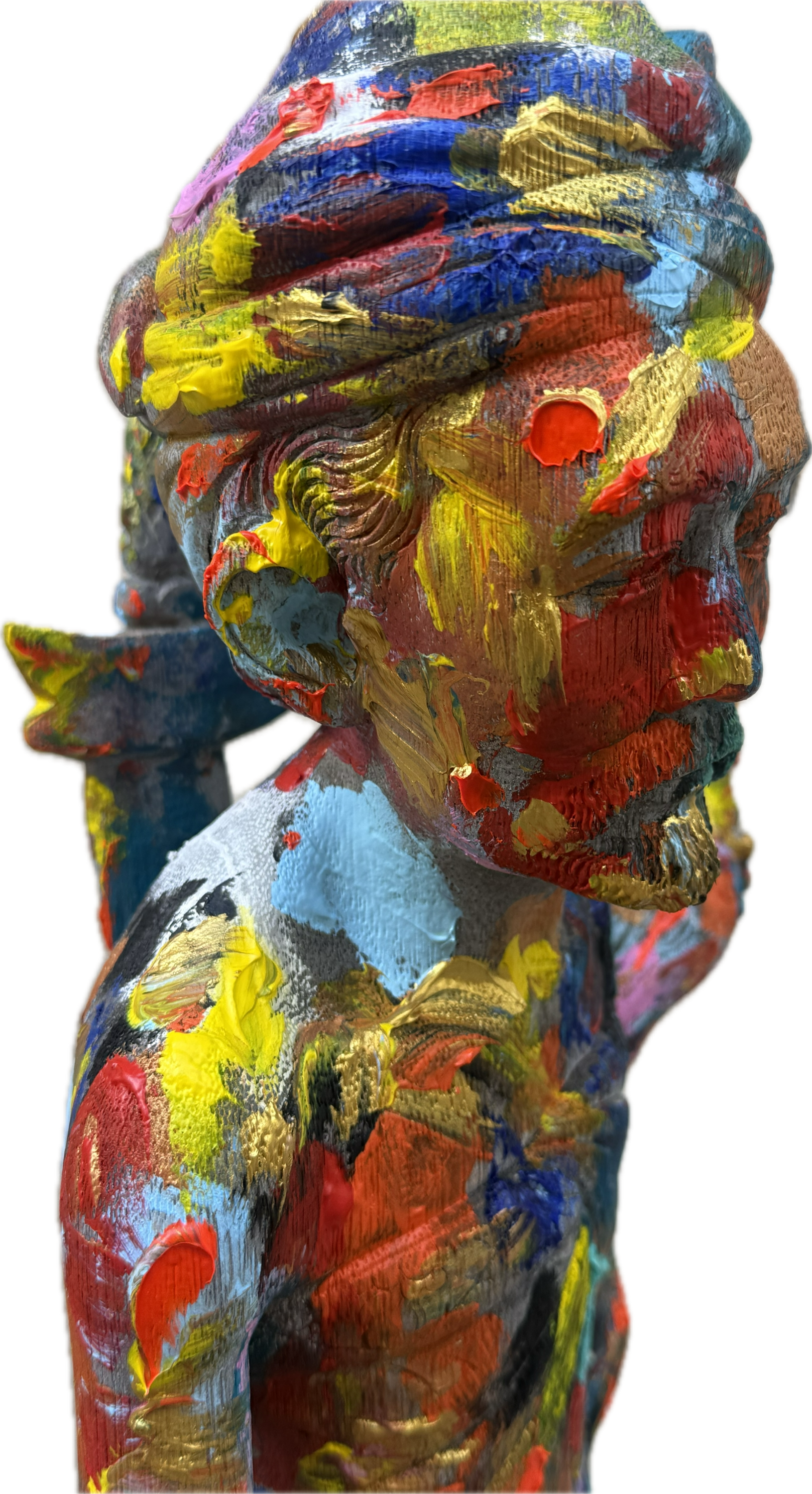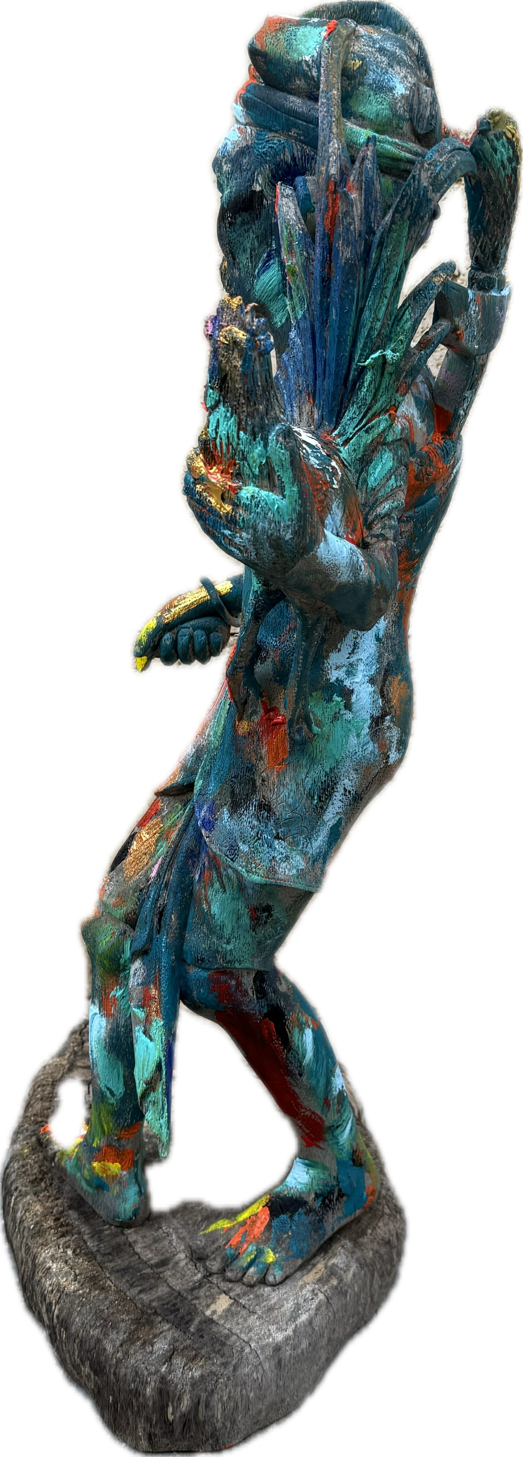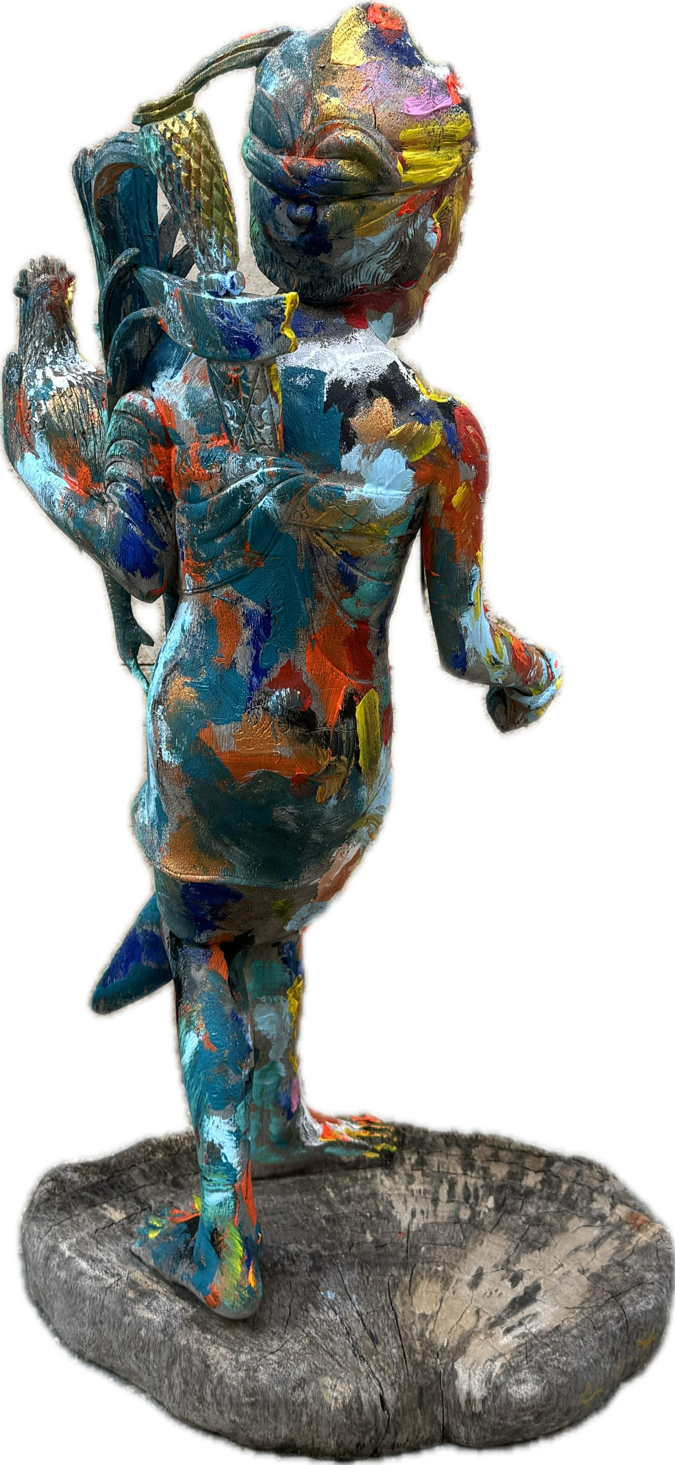 Escultura vintage de madera tropical de Bali, una obra exclusiva pintada a mano por el reconocido artista Karlos Mayet de L’Escala. Girona . Esta pieza única combina la tradición artesanal balinesa con un toque contemporáneo, ideal para los amantes del arte y la decoración con historia.