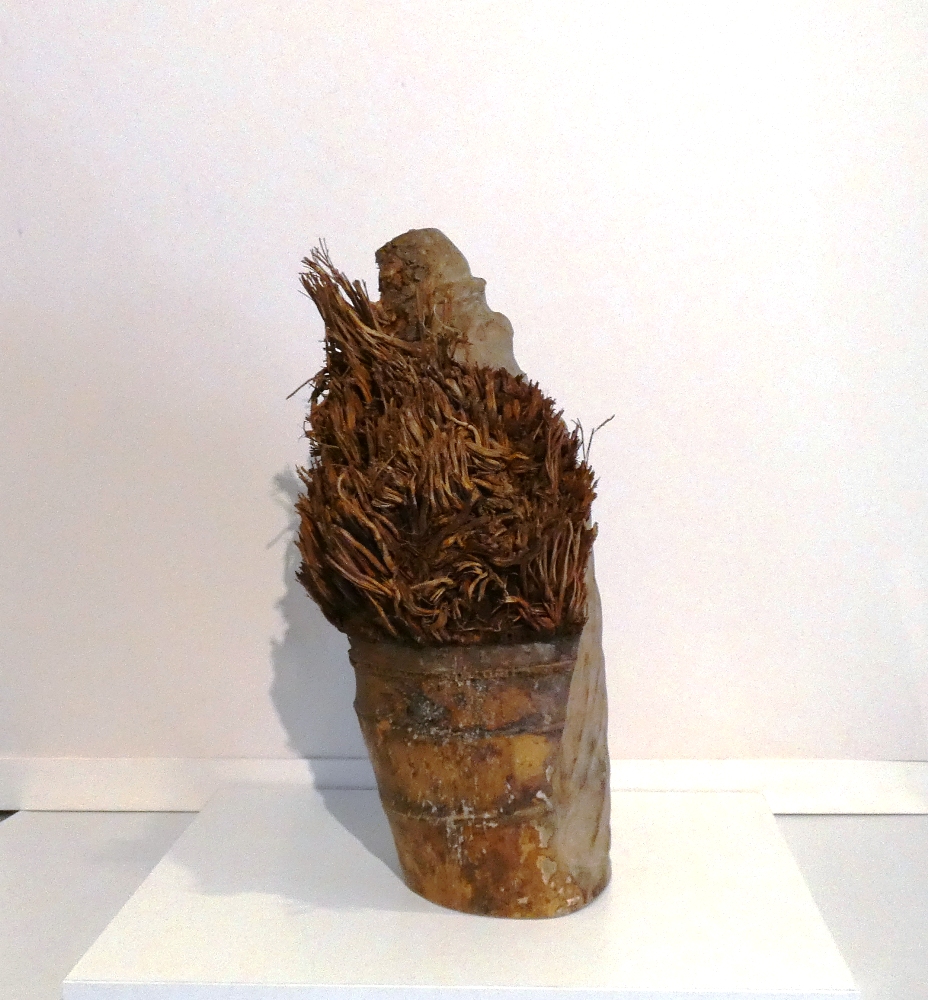Monje budista chino tallado en bambú