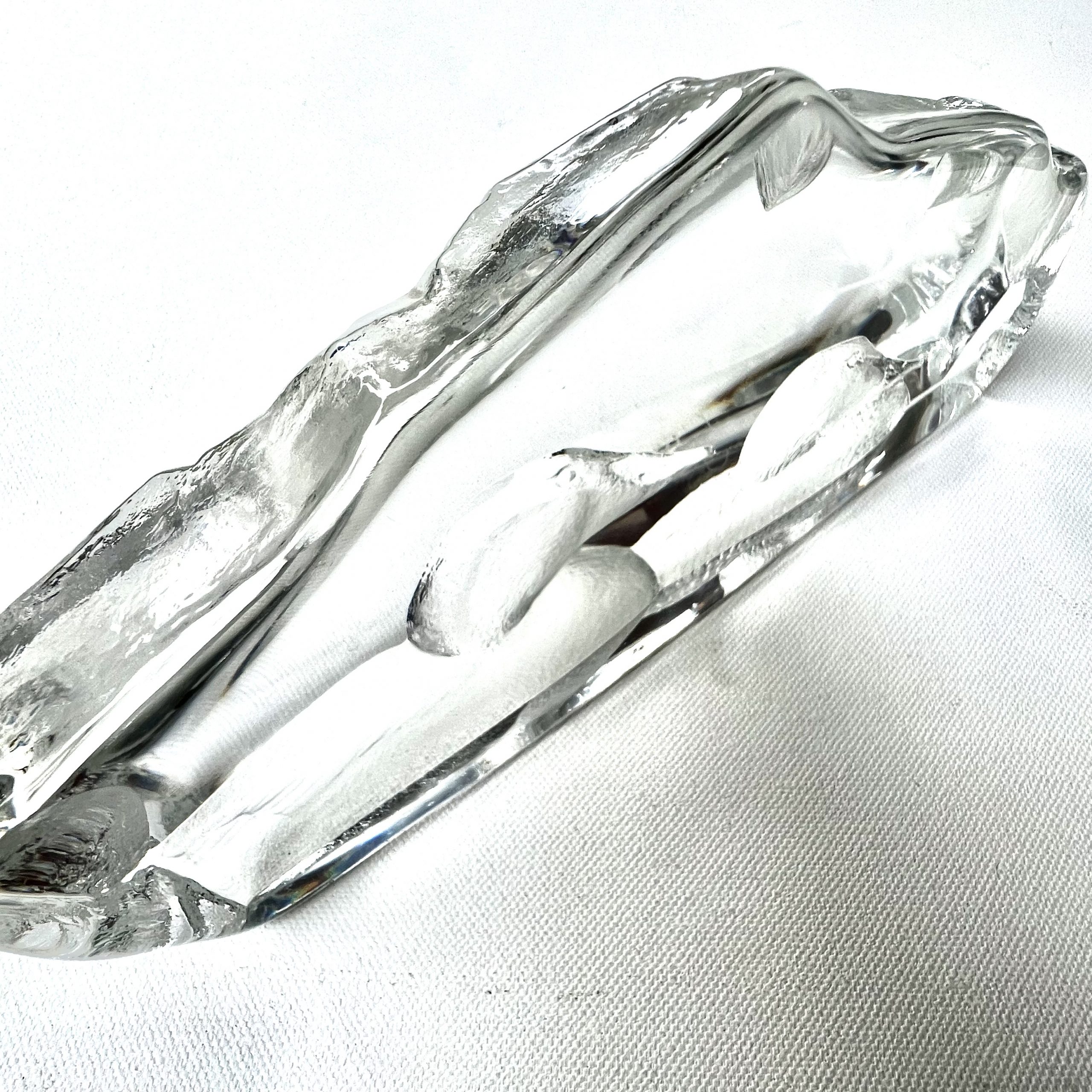 Bonito objeto de decoración de cristal de Mats Jonasson, representan pareja de patos. Pieza firmada.