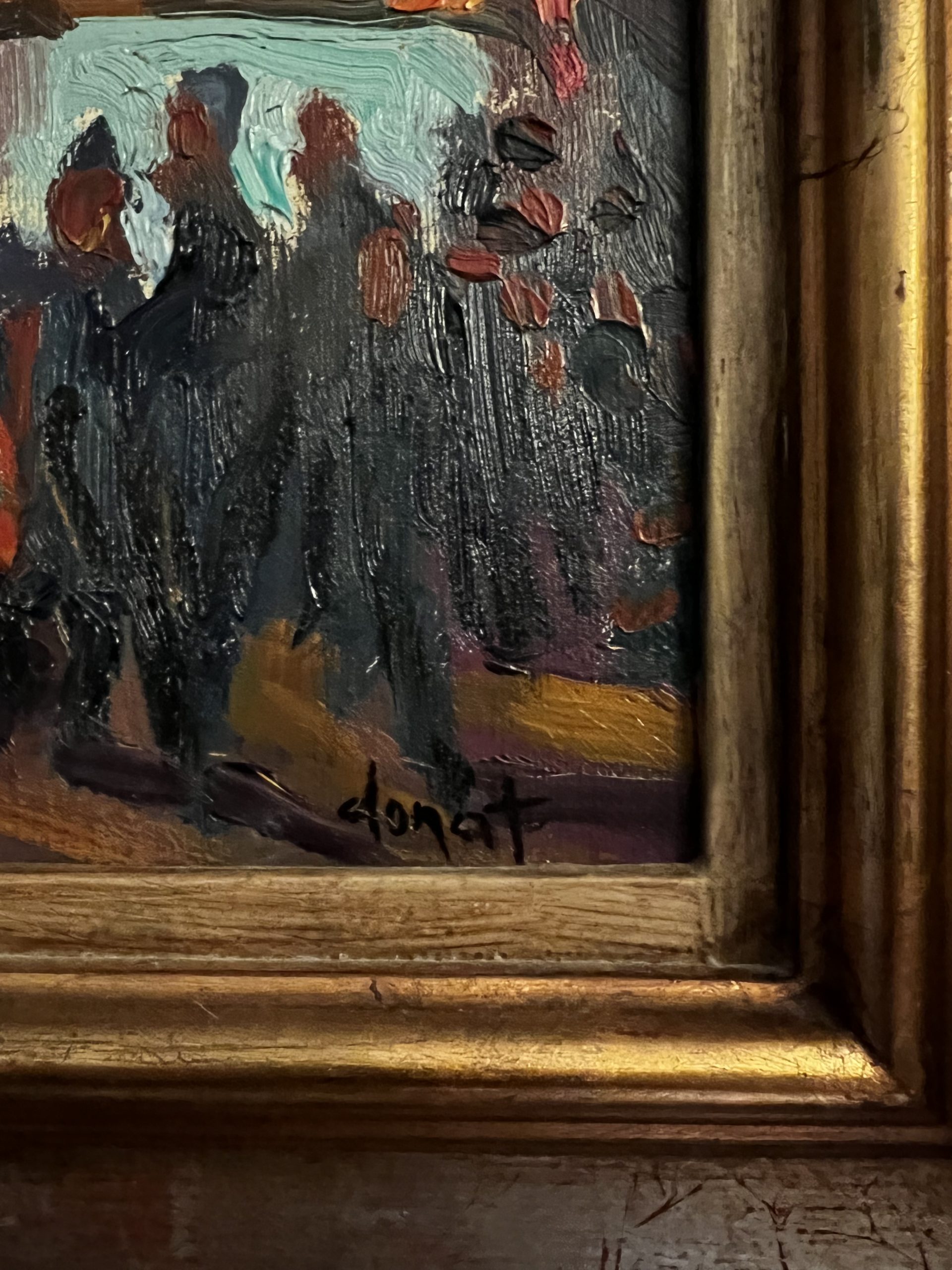Bonito óleo de Mercedes Donat, pintur muy bien conservada con Marco incluido.