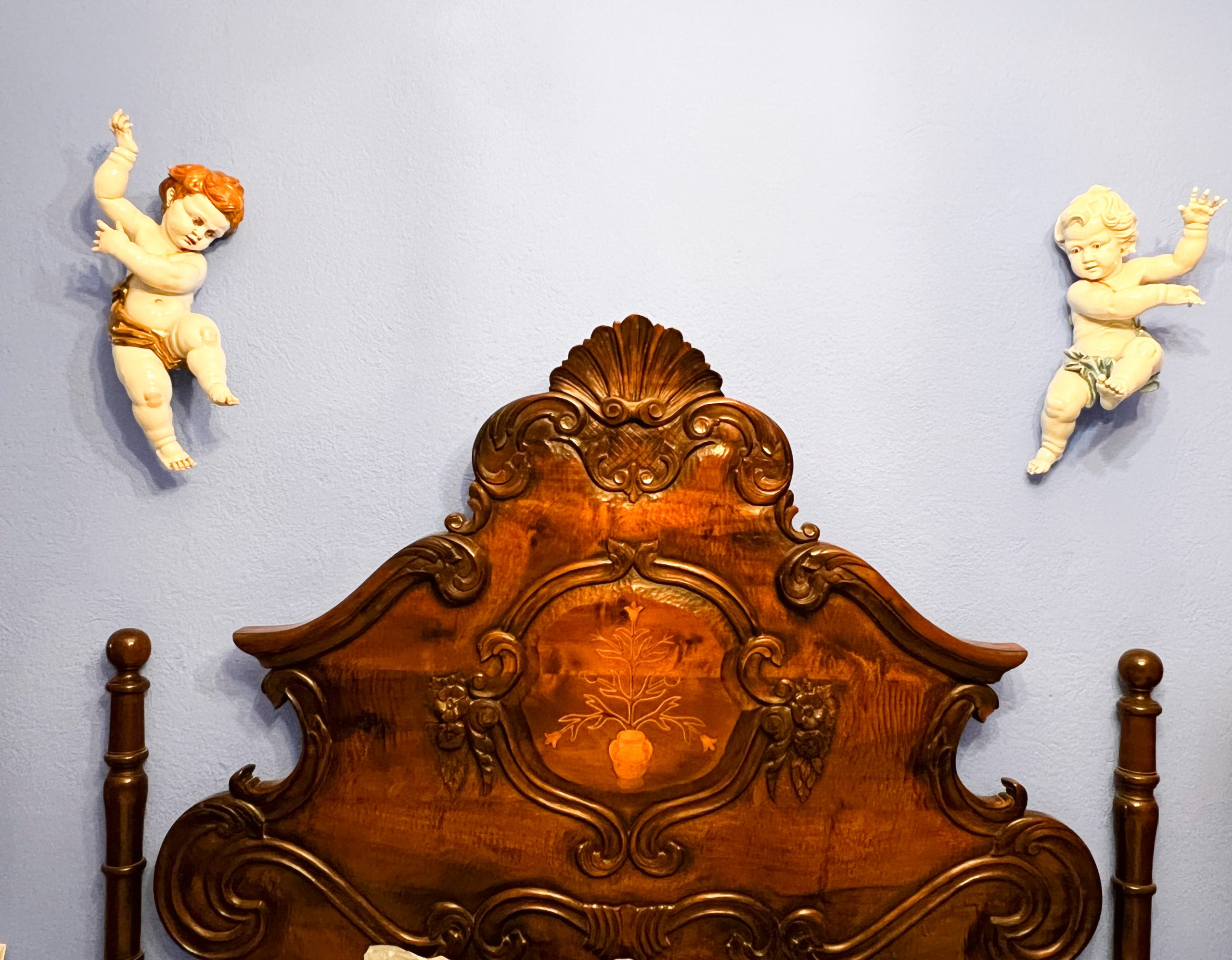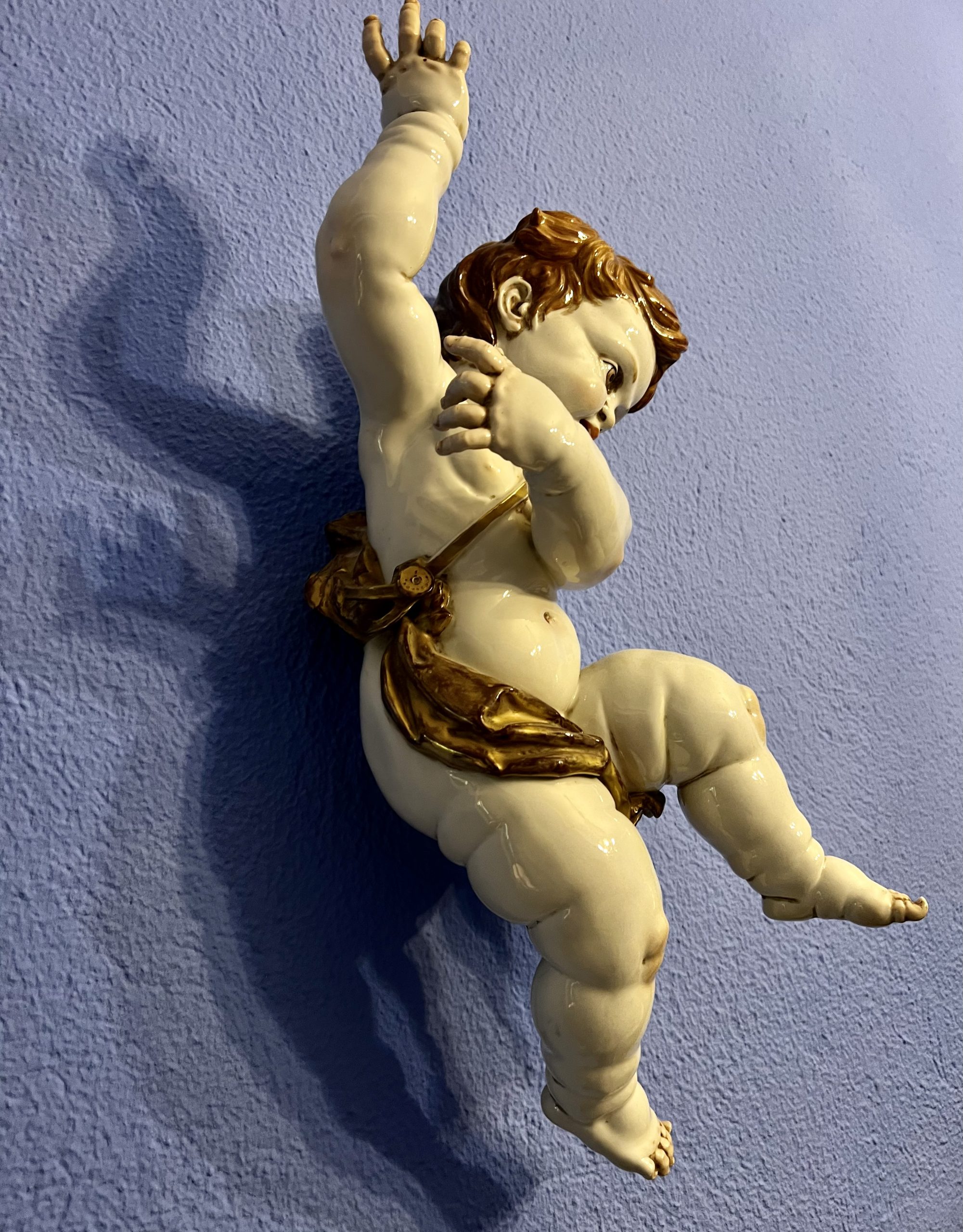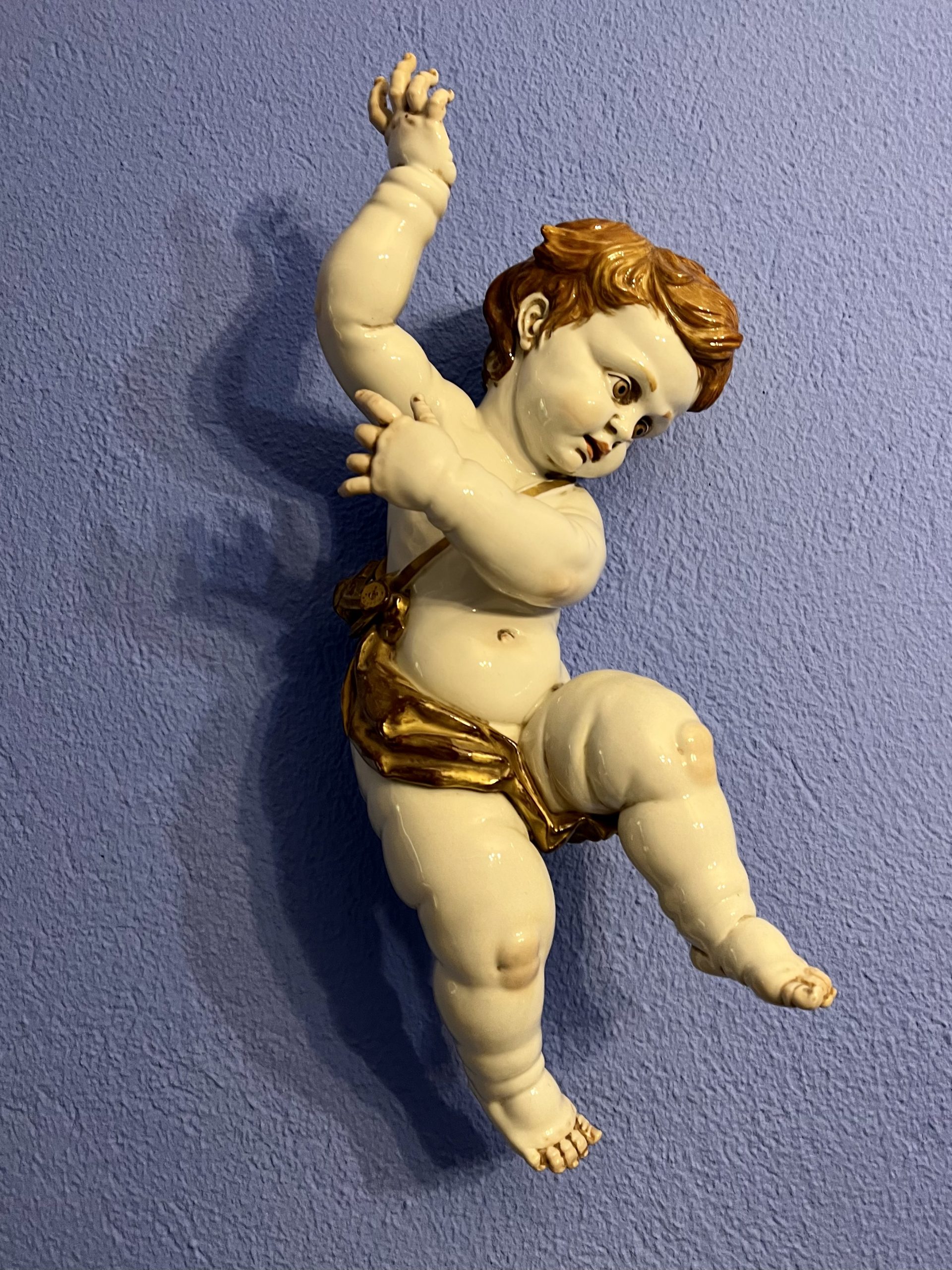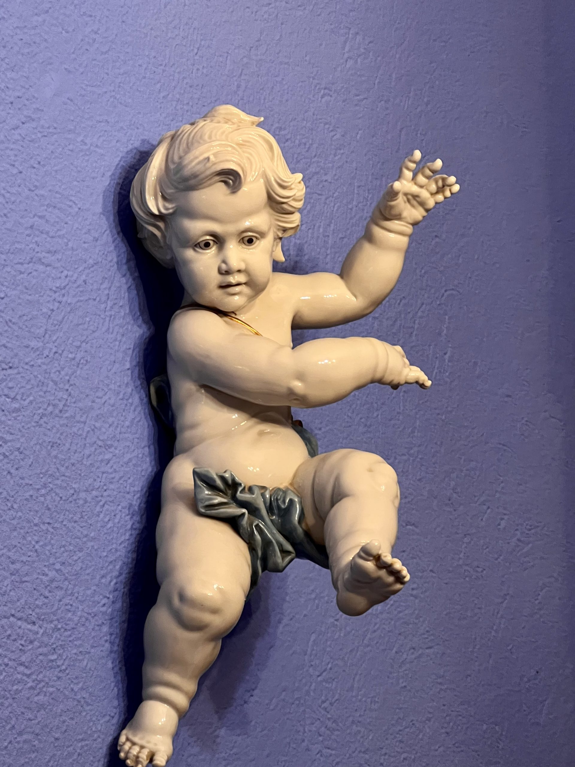Bonita pareja de querubines de porcelana pintada a mano. Fabricado la la casa Algora, ya desaparecida.