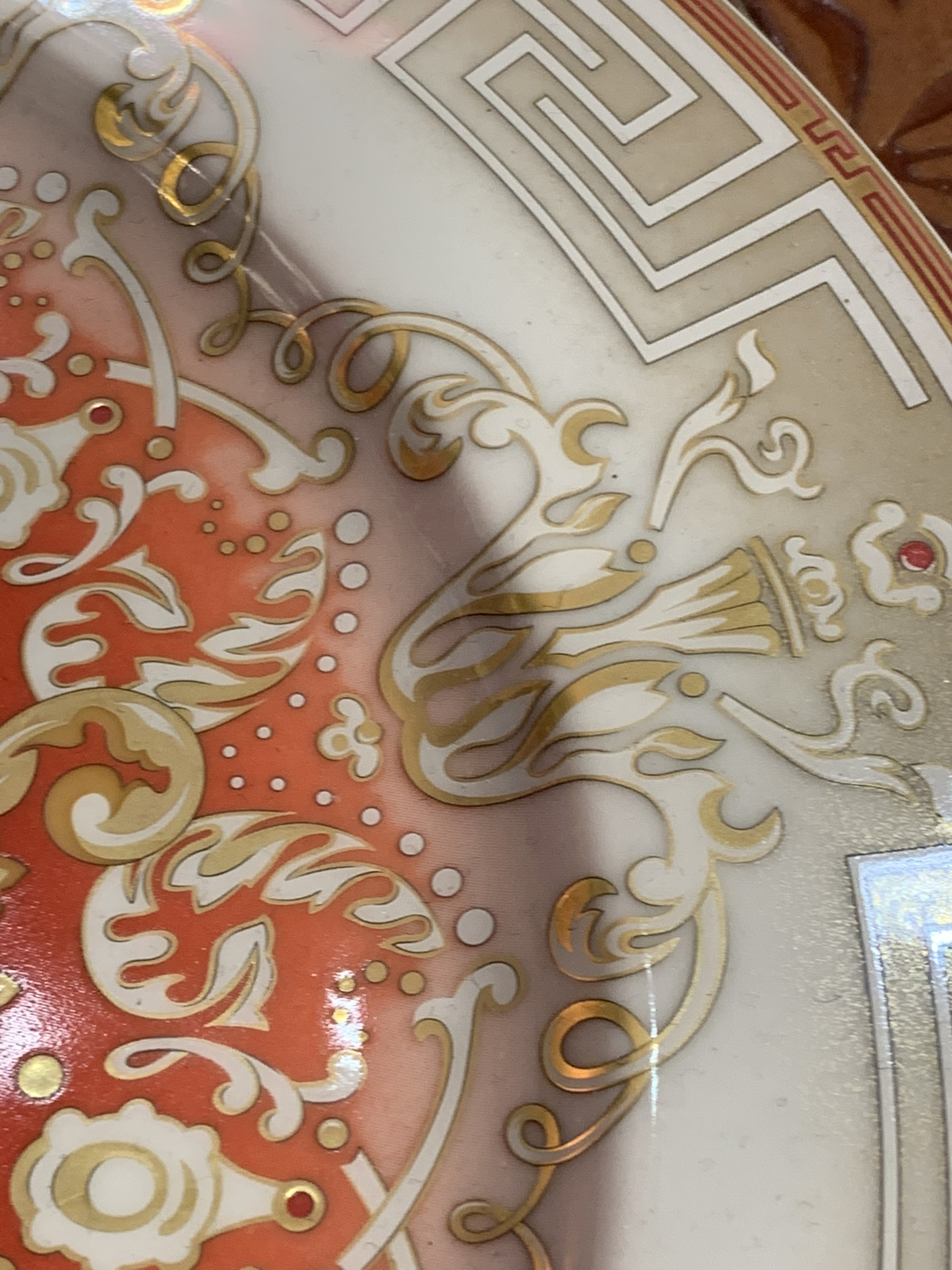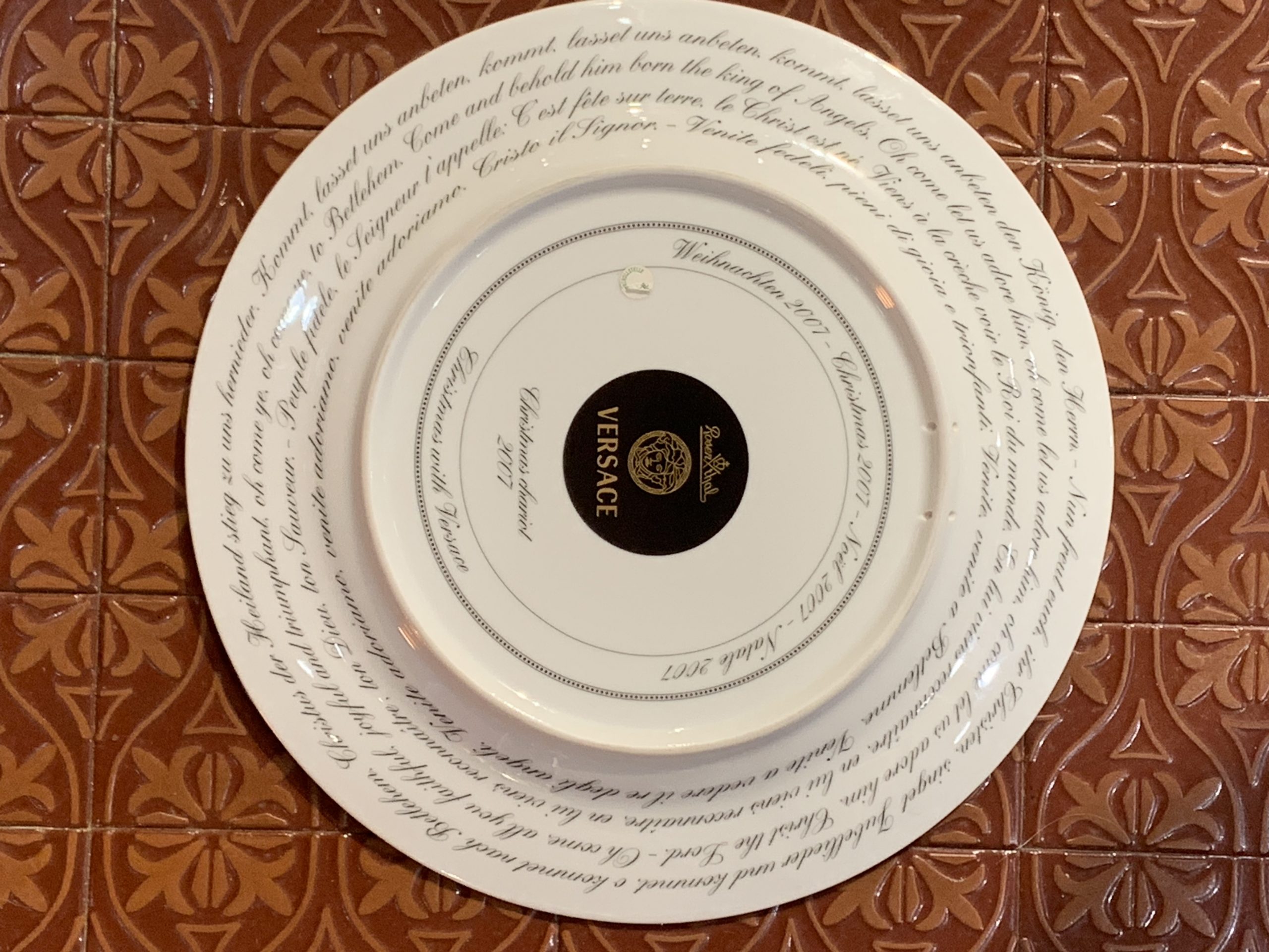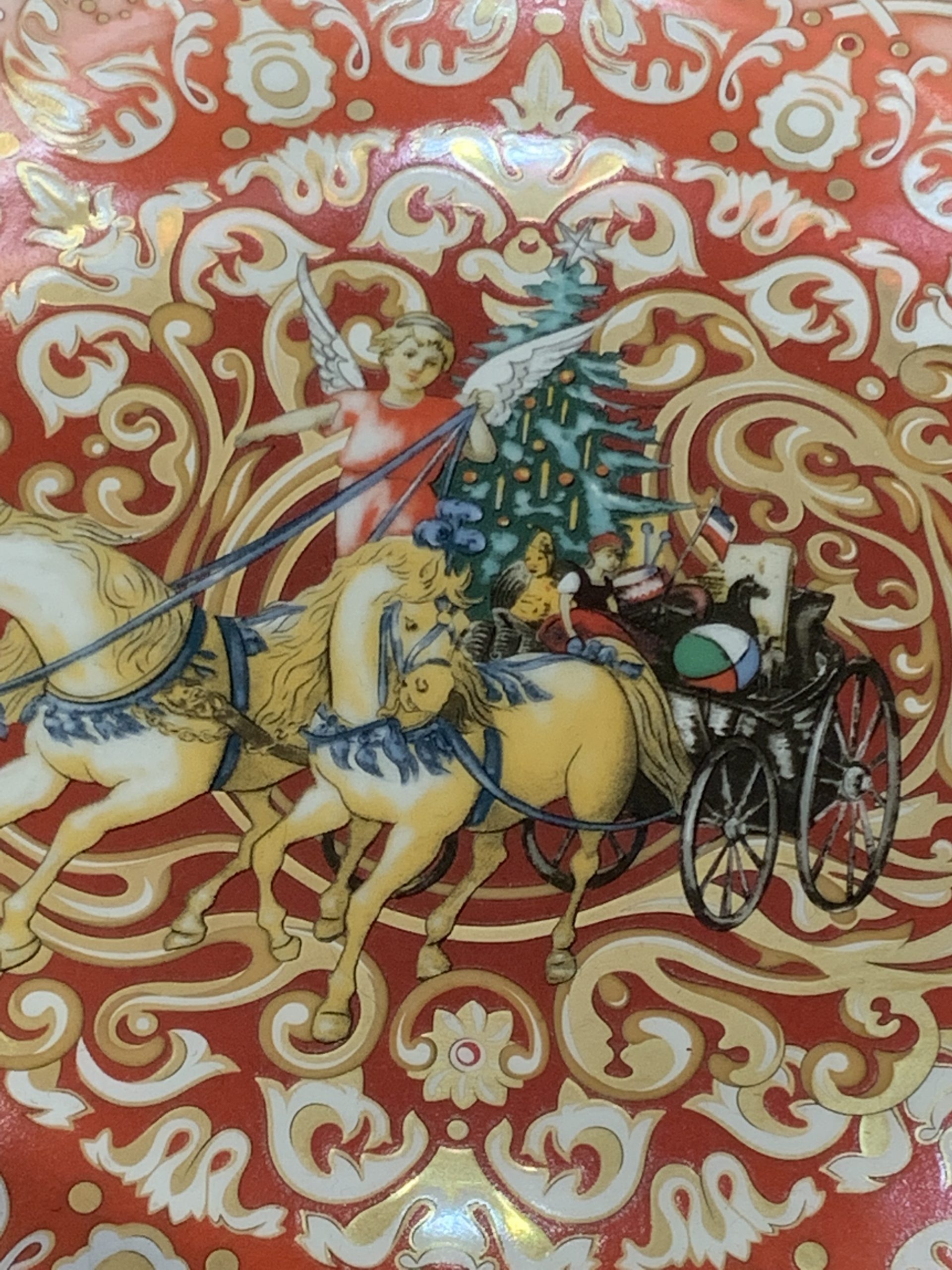 Plato de porcelana de la casa Rosenthal para Versace. De los años 90. Motivo navideño. Pocas veces lo hemos lucido en nuestras mesas de Navidad pero cuando lo hemos hecho ha causado sensación.